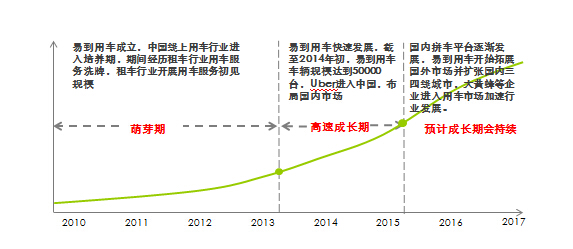 預(yù)計(jì)到2017年,中國(guó)移動(dòng)互聯(lián)網(wǎng)市場(chǎng)規(guī)模將接近5000億。規(guī)?;咚侔l(fā)展的移動(dòng)互聯(lián)網(wǎng)也給易到用車為代表的智能用車企業(yè)提供了良好的發(fā)展背景。而其中出行要素的變化改變了我們的生活方式,在出行方式各行業(yè)歷史上,除公共交通外的私人用車形勢(shì),經(jīng)歷了從租車到出租車再到用車形式的轉(zhuǎn)變,使用戶在滿足出行的訴求基礎(chǔ)上需求更加優(yōu)質(zhì)和靈活的出行服務(wù),用車服務(wù)應(yīng)運(yùn)而生。移動(dòng)互聯(lián)網(wǎng)高速發(fā)展,便捷的智能用車服務(wù)也逐漸興起。