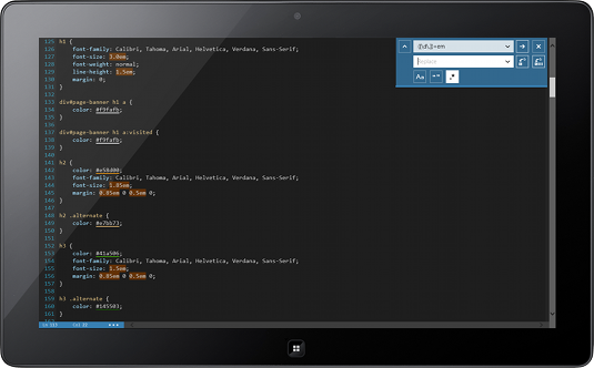 雖然windows平臺上的代碼編輯器不少,但是在Windows8平板上體驗足夠好的,方便移動使用的好的代碼編輯器屈指可數(shù),而Code Writer就是其中之一。Code Writer界面時尚,整體設(shè)計非常符合Windows 8的Metro風(fēng)格,而功能上也非常到位,語法識別、自動糾錯等一個都不少。